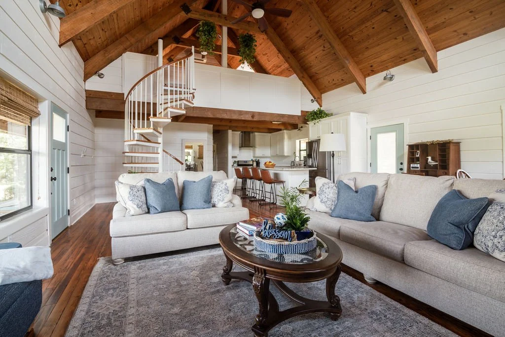 This cabin was built in the 1980s by Don Ganter (of Dixie Chicken Fame) + his “Bud Crew”.