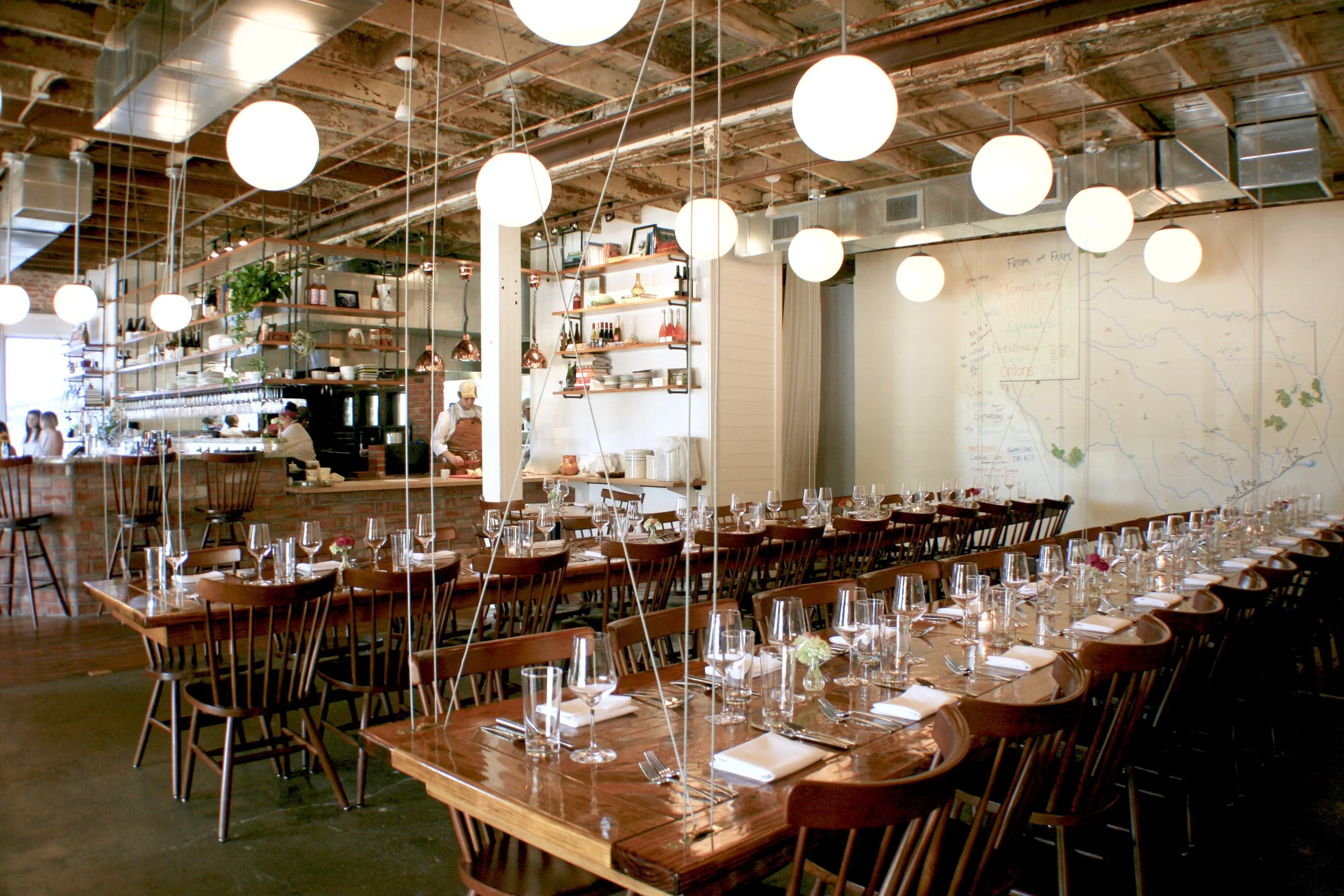 Our Restaurant location featured family farm cuisine with a constantly evolving menu. It was set in the historic Ice House on Main in Downtown Bryan, our restaurant shared an open-air kitchen with our dining room, floor to ceiling exposed brick, and hand-built, fully-functional (yes, they went up and down!) suspension tables.